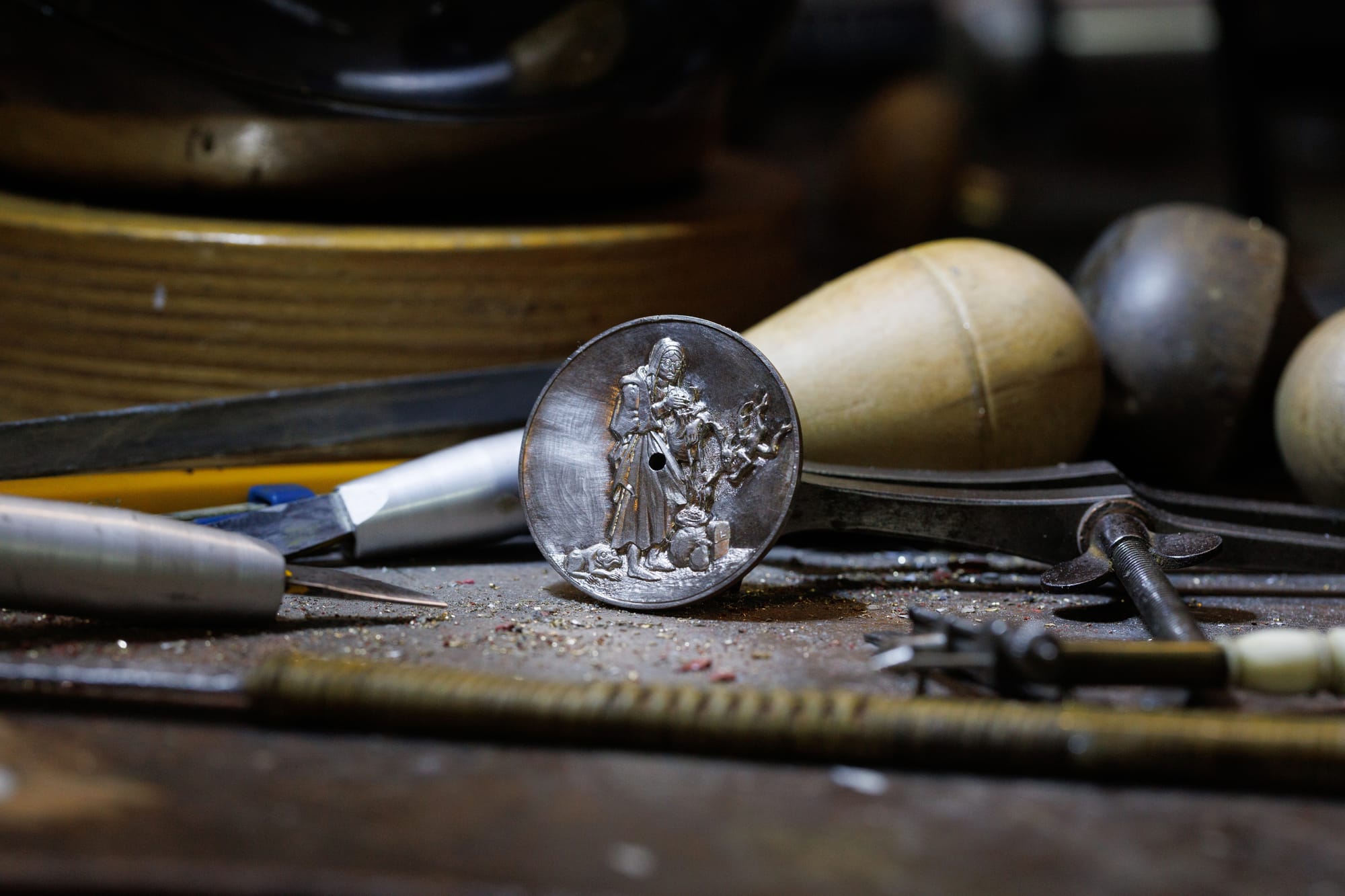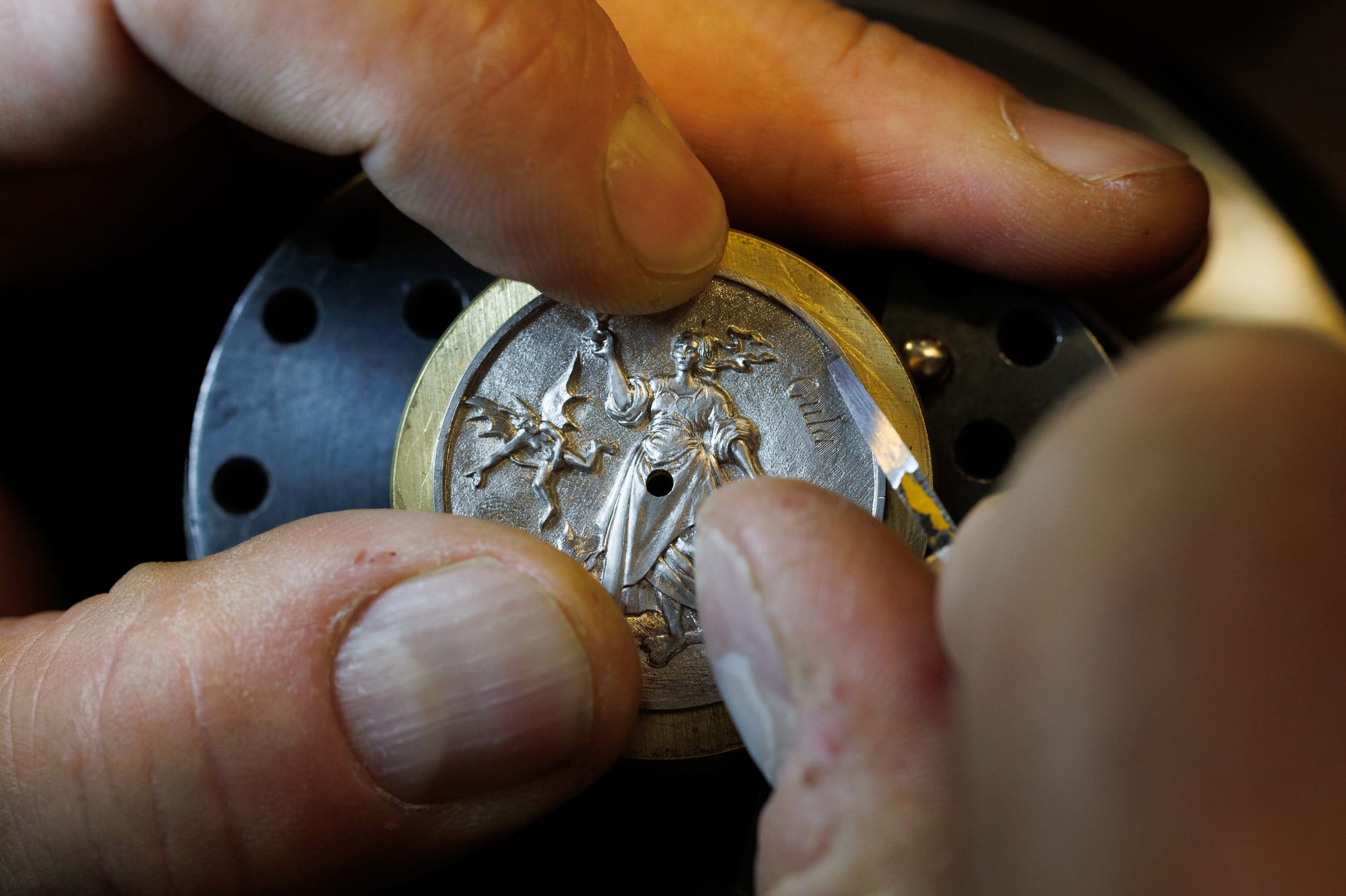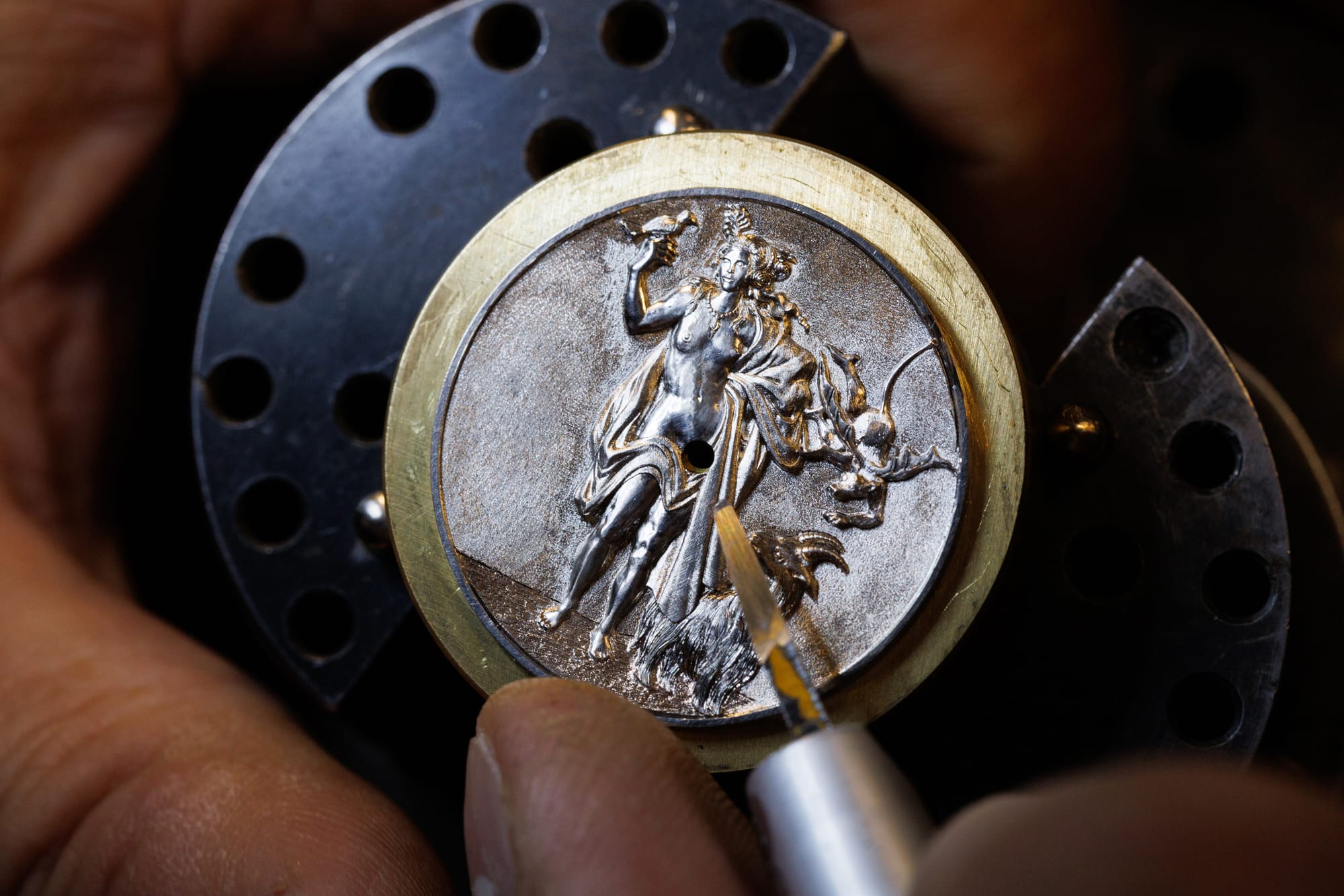 The translation problem was specific to each of the seven. Callot's prints are rectangles. A watch dial is a circle with a centre that pulls, a perimeter that curves, and zones of visual tension that a rectangle does not. Every element that falls outside the circle must move inside it or be abandoned. Every line Callot achieved through the pressure of the échoppe must be restated in relief, metal raised above the field, read as illumination and shadow in three dimensions rather than ink pressed into recessed lines on paper. The calibration is different for each of the seven, and the differences are instructive.