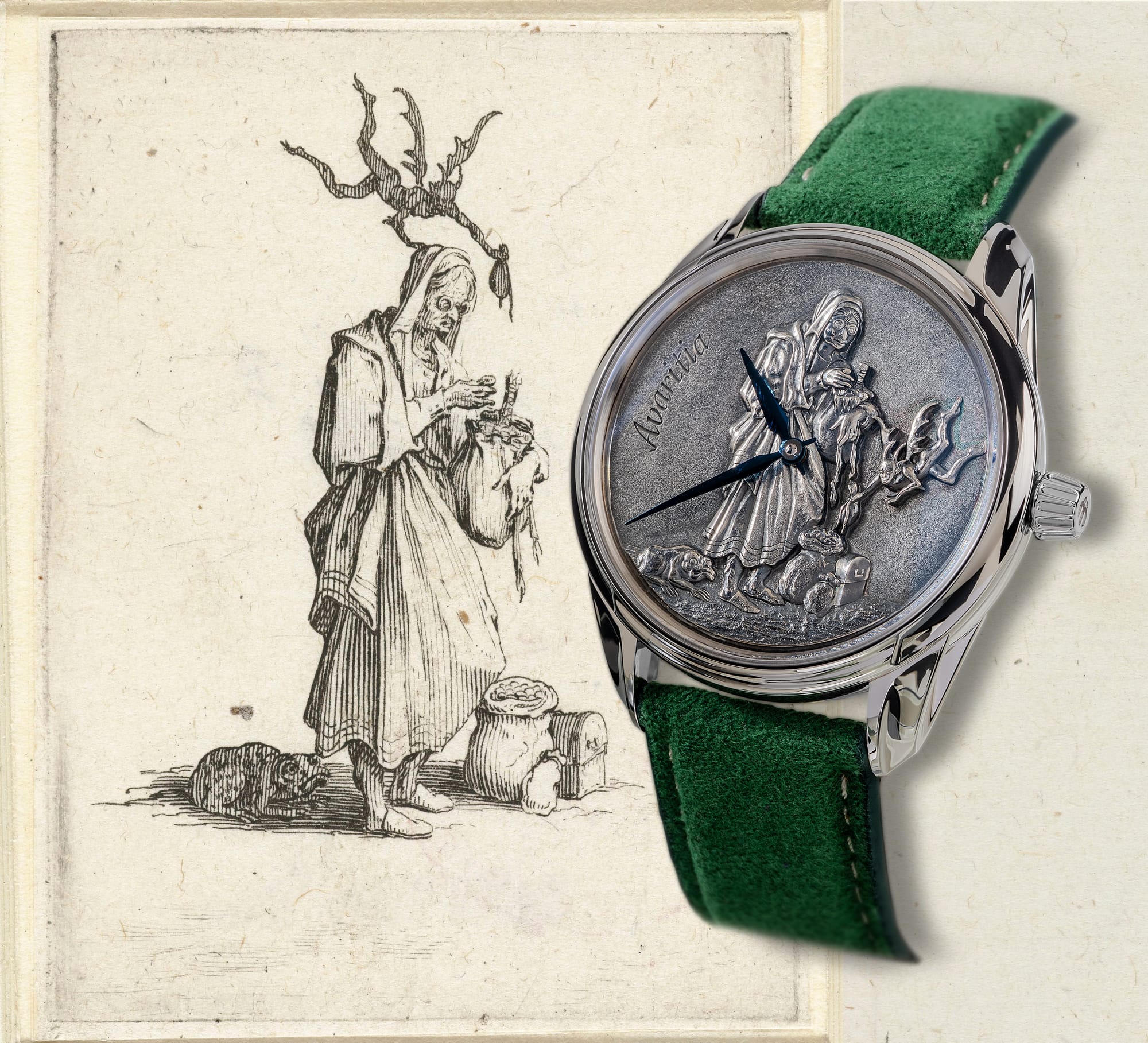 In 2022, in Geneva, Kees Engelbarts sat at a screen and searched for images of the seven deadly sins. Engelbarts is Dutch, one of the most accomplished dial engravers working in the watch industry, based in Geneva for decades but formed in the Netherlands. The Gronefeld brothers, Bart and Tim, also Dutch, working from Oldenzaal, had been friends with him for nearly thirty years. They had agreed on a theme for a new collaboration. Engelbarts needed source material that would translate into a circular field. He found the Callot series in the Rijksmuseum's open-access digital archive, held there because Rembrandt, the gravitational centre of that institution's identity, had collected them. The chain runs from Callot's studio in Nancy through Rembrandt's Amsterdam to a screen in Geneva, and it runs through the recognition that small things can carry large arguments.